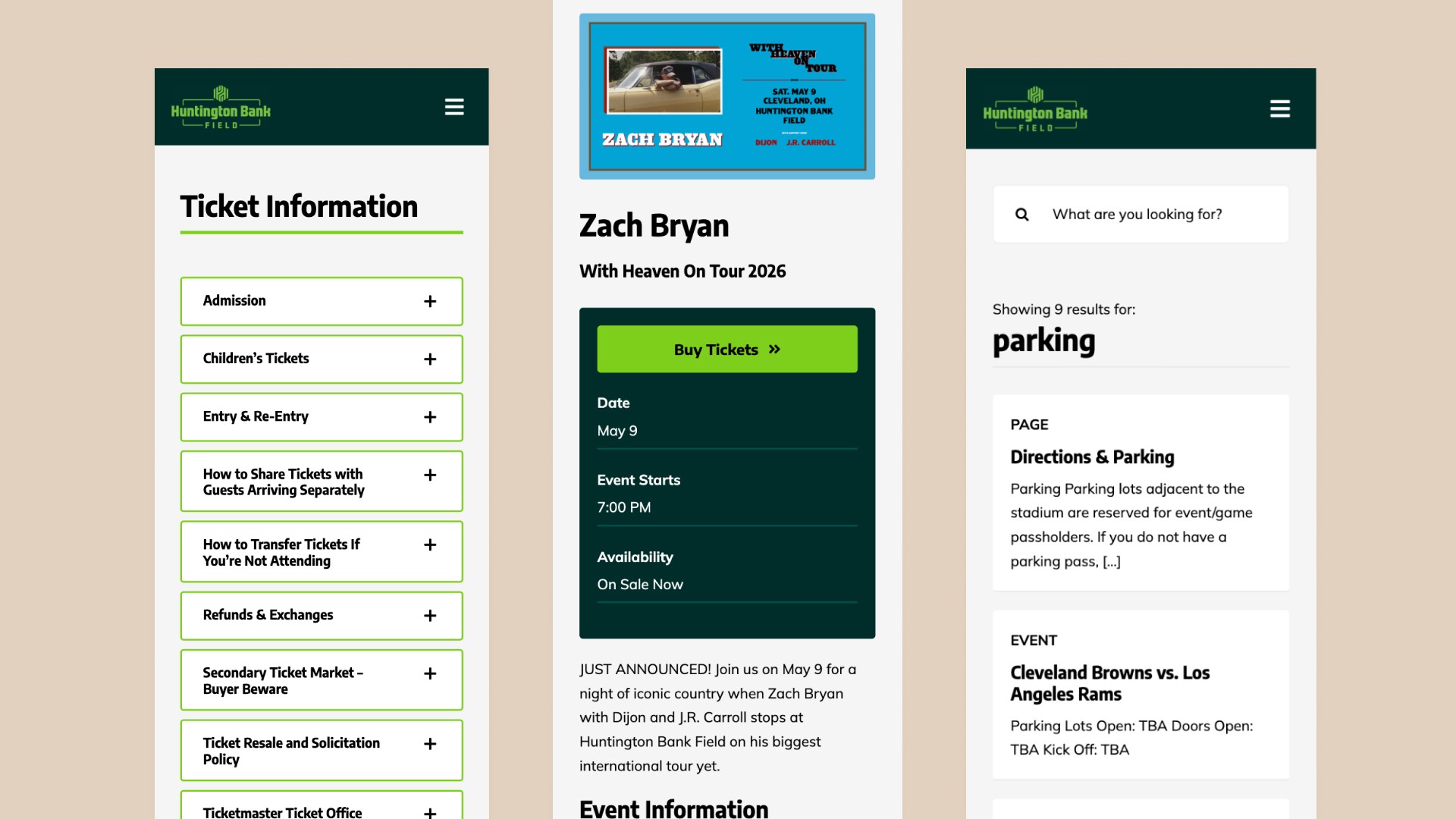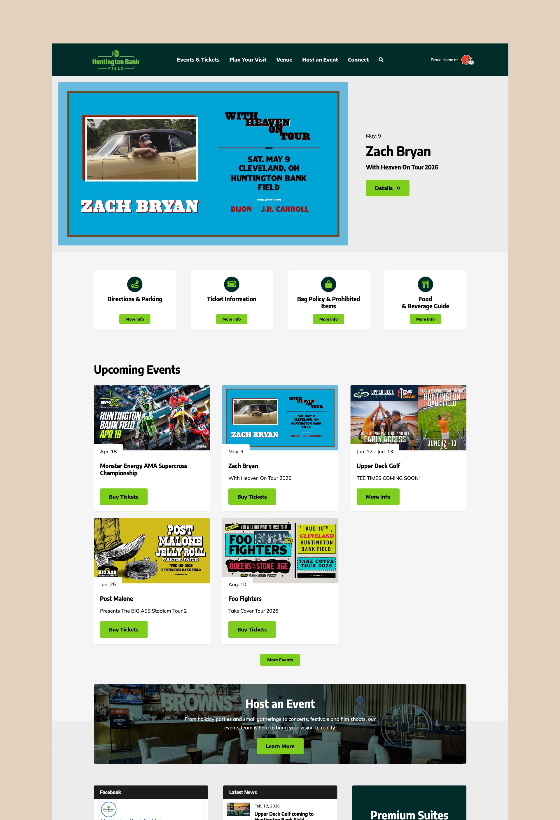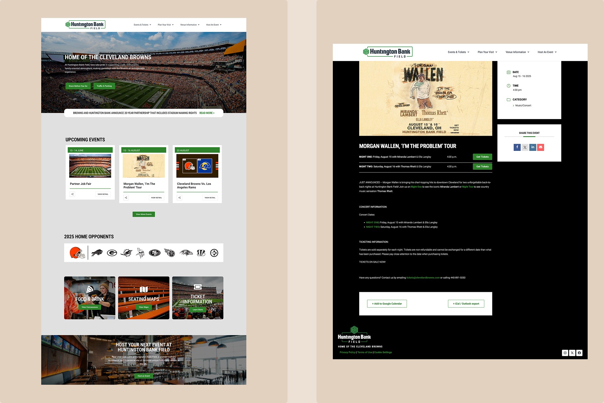 I led the full redesign and rebuild of the Huntington Bank Field website for the Cleveland Browns, creating a cleaner, more consistent, and event-focused experience. The new site improved usability, increased engagement by 20%, and streamlined content management for internal teams.