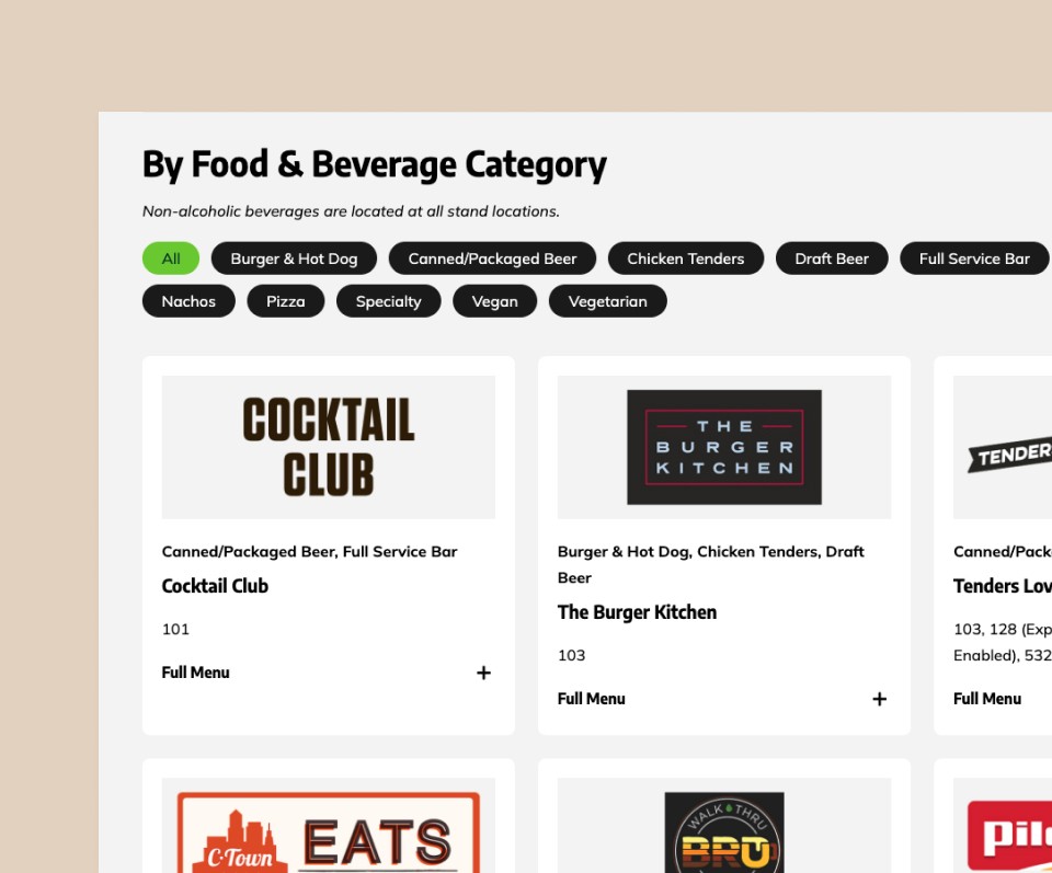 Reworked key areas, including Seating Maps, Ticket Information, Directions & Parking, to reflect actual fan decision paths.