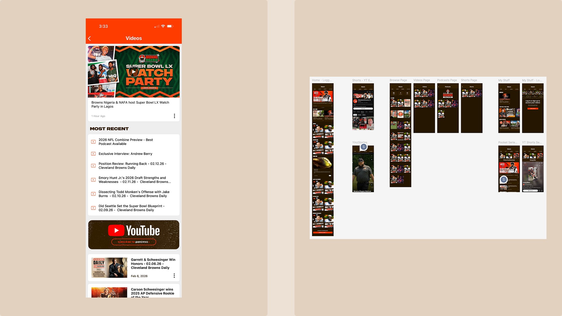 Transforming a simple video feed into a dynamic, streaming-style hub that reimagines how fans discover and watch Browns video content.