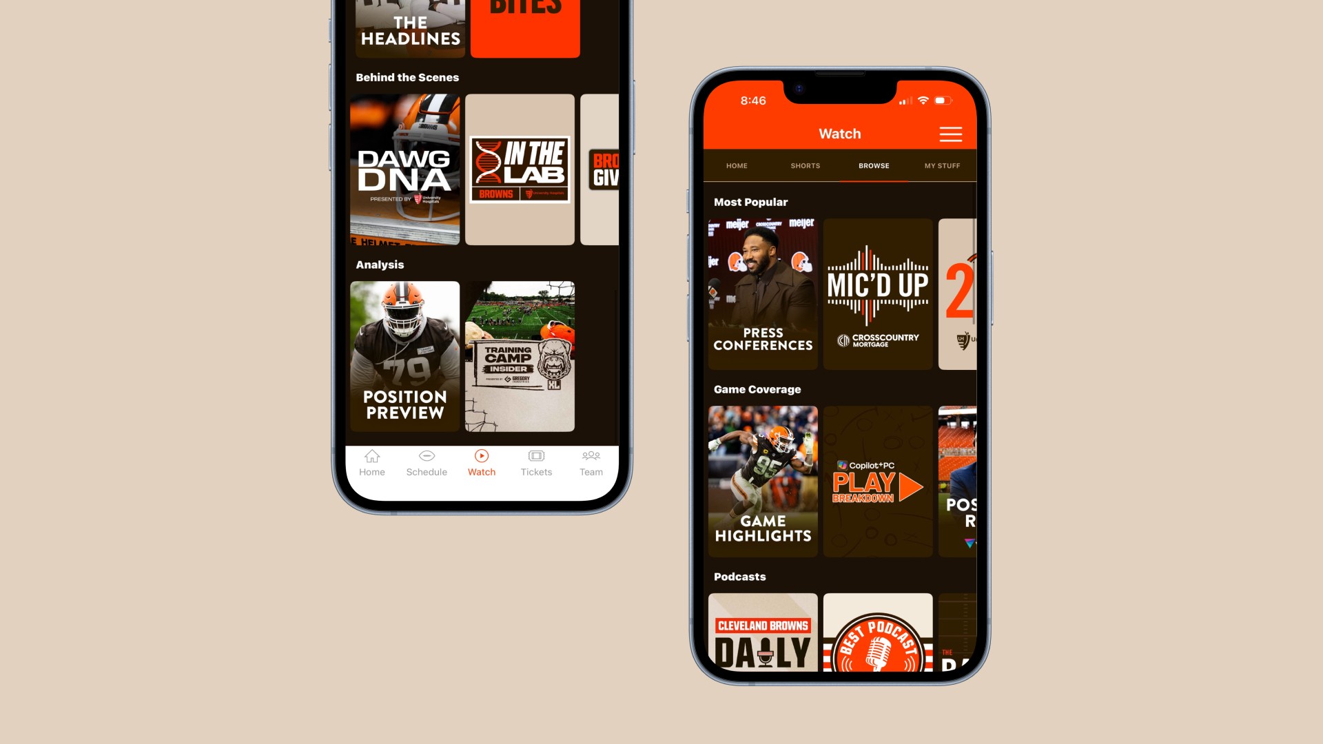 The new Video Hub centralizes all Browns video content including highlights, interviews, short clips, and exclusive series into one cohesive experience designed for both quick browsing and deep dives.